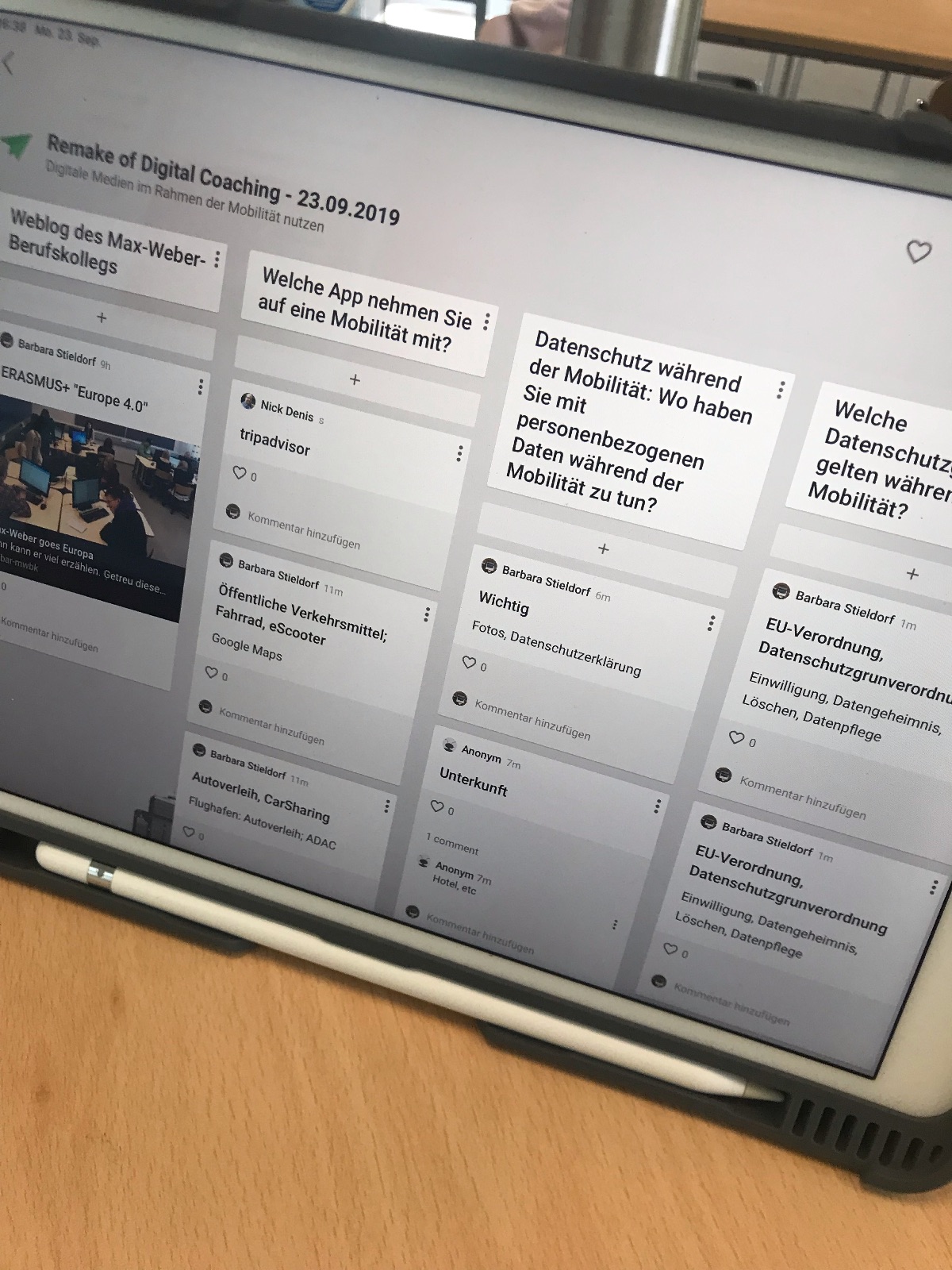 Das Modul digital coaching wird seit 2018 am Max-Weber-Berufskolleg angeboten. Hierbei vertiefen die Schülerinnen und Schüler technische Aspekte des Auslandsaufenthaltes. Im Rahmen der Mobilität wird ein Weblog geführt. Hierzu werden Aspekte des Datenschutzes und der Bildrechte vertieft. Aber auch Informationen, wie „Welche Apps sind für einen Auslandsaufenthalt sinnvoll?“, werden von den beiden Seminarleitern Barbara Stieldorf und Nick Denis thematisiert.