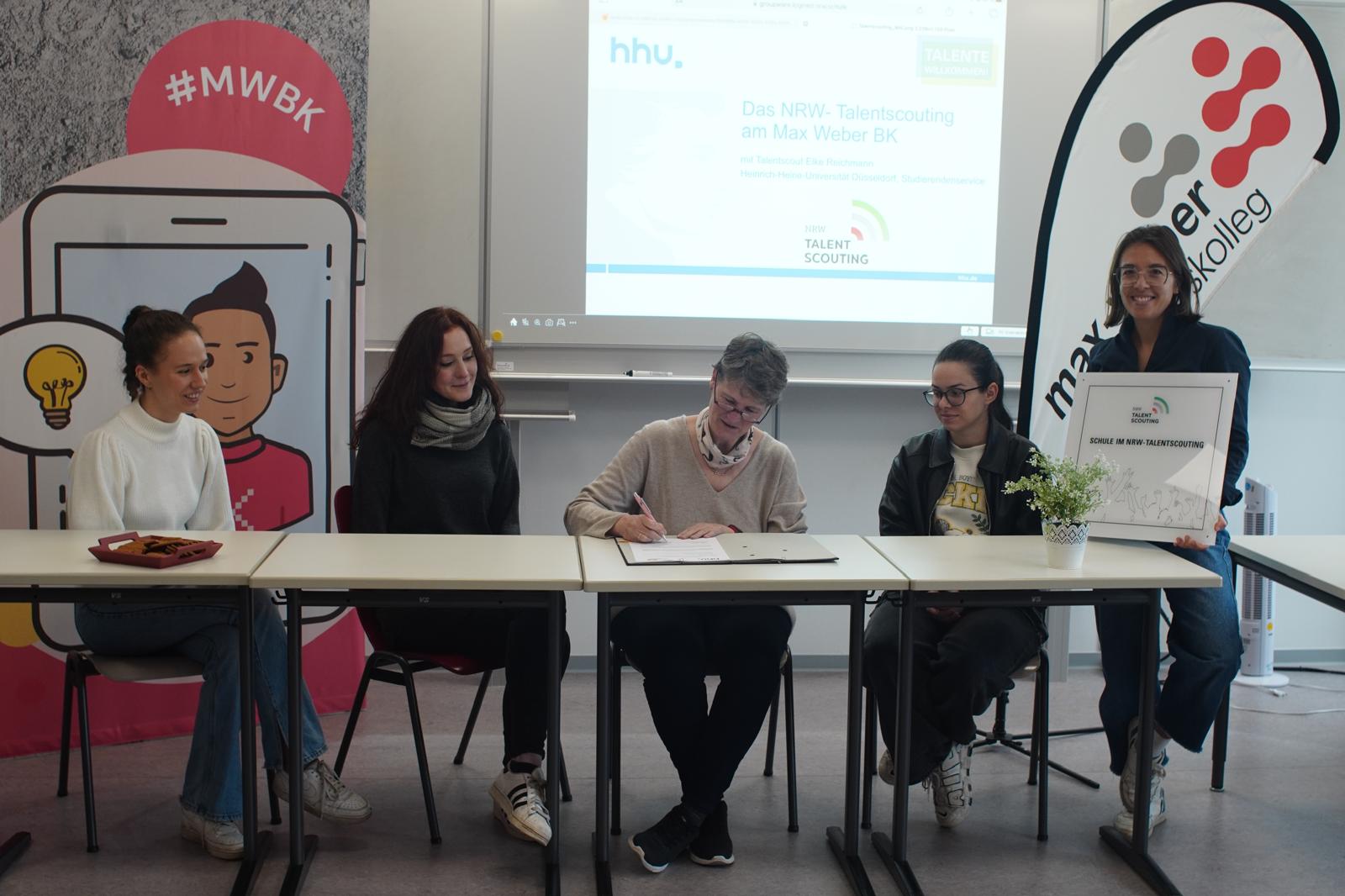 Am Donnerstag war es soweit: Mit der feierlichen Vertragsunterzeichnung sind wir nun offiziell „Schule im NRW-Talentscouting“! Dies ist ein wichtiger Schritt, um unsere Schülerinnen und Schüler auf ihrem individuellen Bildungsweg noch intensiver zu fördern. Frau Reichmann, unser Talentscout, überreichte die offiziellen Verträge und begleitete die Unterzeichnung. Auch zwei engagierte Teilnehmerinnen und Teilnehmer aus der FOS 13 waren dabei, die zukünftig von den zusätzlichen Fördermöglichkeiten profitieren werden.
