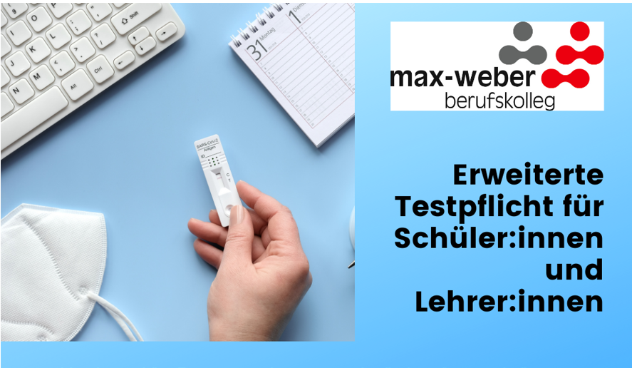 Positive Testergebnisse außerhalb von Schule melden Sie bitte weiterhin unverzüglich an info@max-weber-berufskolleg.de bzw. Ihre/-n Klassenlehrer/-in.