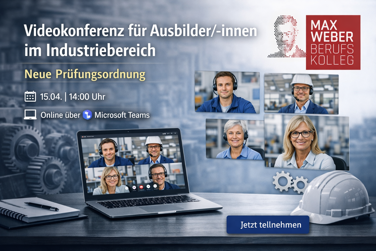 Informieren Sie sich über die neue Prüfungsordnung in unserer Online-Veranstaltung für Ausbilder/-innen im Industriebereich. Die Teilnahme erfolgt bequem per Microsoft Teams.