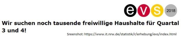 Weitere Informationen finden Sie unter: www.evs.nrw.de und unter www.it.nrw.de, die Teilnehmer können ein Teilnahmeprämie von 95 € erhalten.