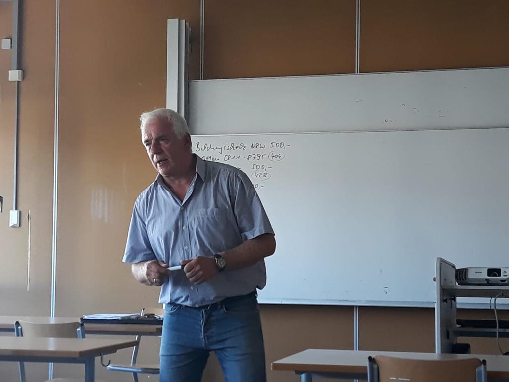 Viele Azubis wollen nach erfolgreicher Übernahme in dem Ausbildungsbetrieb „erst einmal ankommen“. Daneben kreisen die Gedanken vielleicht noch um ein Studium – die Option berufliche Weiterbildung zumindest haben nur wenige auf dem Schirm. Das wollten wir vom Max-Weber-Berufskolleg ändern. Spätestens seit der Einführung des Deutschen Qualifikationsrahmens und der Vergleichbarkeit beruflich erworbener Fertigkeiten mit universitären Bildungsabschlüssen sollte man einen genaueren Blick auf dieses oft unbekannte Terrain werfen. Dazu holten wir uns einen Experten ins Haus. Herr Blum von der Handwerkskammer Düsseldorf bot unserer HWK-Klasse des Bildungsgangs „Kaufmann für Büromanagement“ zahlreiche Antworten auf die Fragen, wie es im Anschluss an die Ausbildung weitergehen könnte.