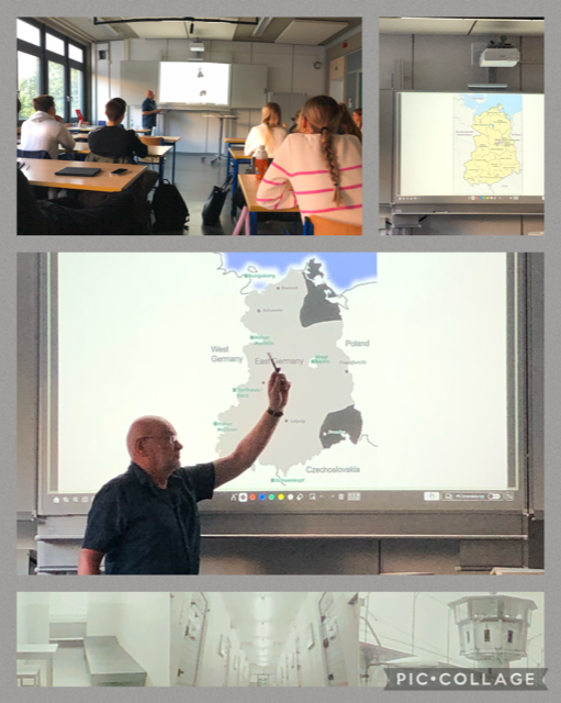 Der Besuch begann mit einer einführenden Präsentation von Herrn Herzog, in der er die politische und soziale Situation in der DDR rund um die 1980er Jahre erläuterte. Die Schülerinnen und Schüler hatten die Möglichkeit Fragen zu stellen und mehr über das Alltagsleben, die Einschränkungen der Meinungsfreiheit und die Mauer, welche Deutschland teilte, zu erfahren.